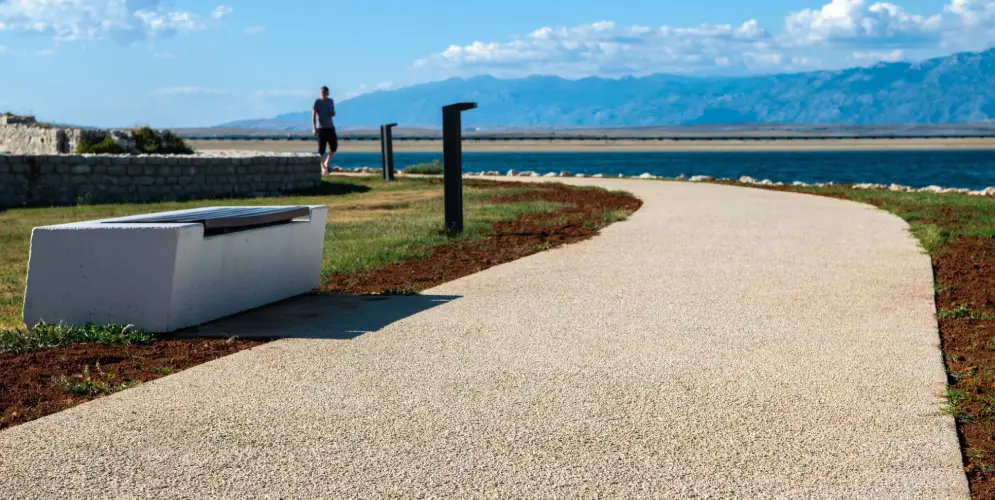 Za uređenje okoliša korišten je CEMEX CoolirADVANCED dekorativni betons dodatkom žutog pigmenta što je omogućilo stvaranje toplog, prirodnog izgleda koji se besprijekorno uklopio u okoliš. Ovaj visokokvalitetni beton osiguravan visok stupanj trajnosti i otpornosti na vanjske uvjete.