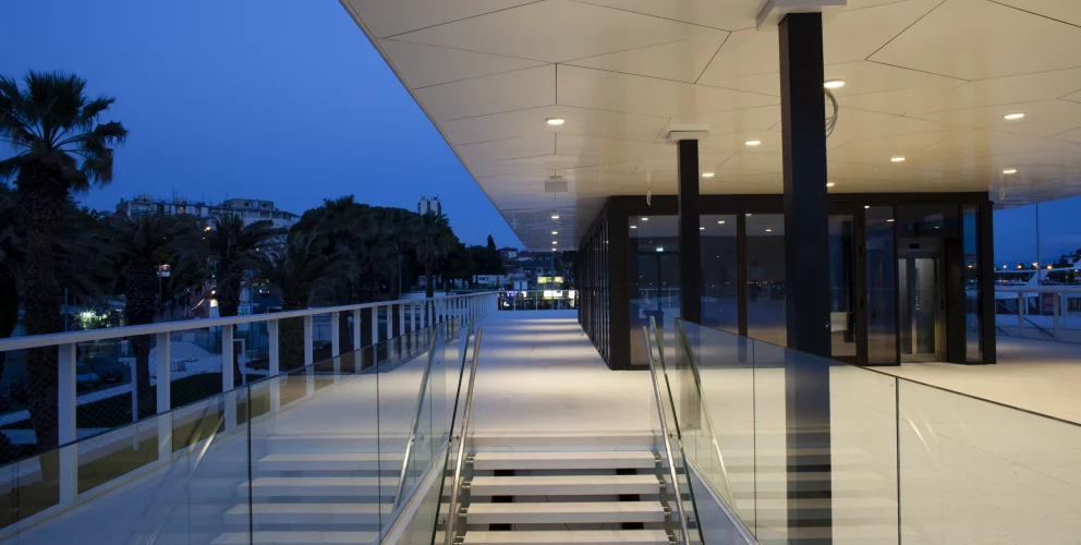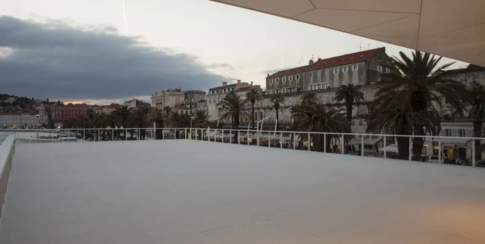 Turistička palača izgrađena je 1968. godine prema projektu arhitekta Čede Rendića i smještena je na istočnom dijelu splitske Rive. 2014. grad Split donio je odluku o potpunoj rekonstrukciji. Zgrada je pažljivo postavljena unutar tradicionalnog okruženja, s minimalnom visinom koja omogućuje očuvanje vizualne povezanosti s okolnim prostorom, uključujući i pogled na južno pročelje palače s krovne terase.