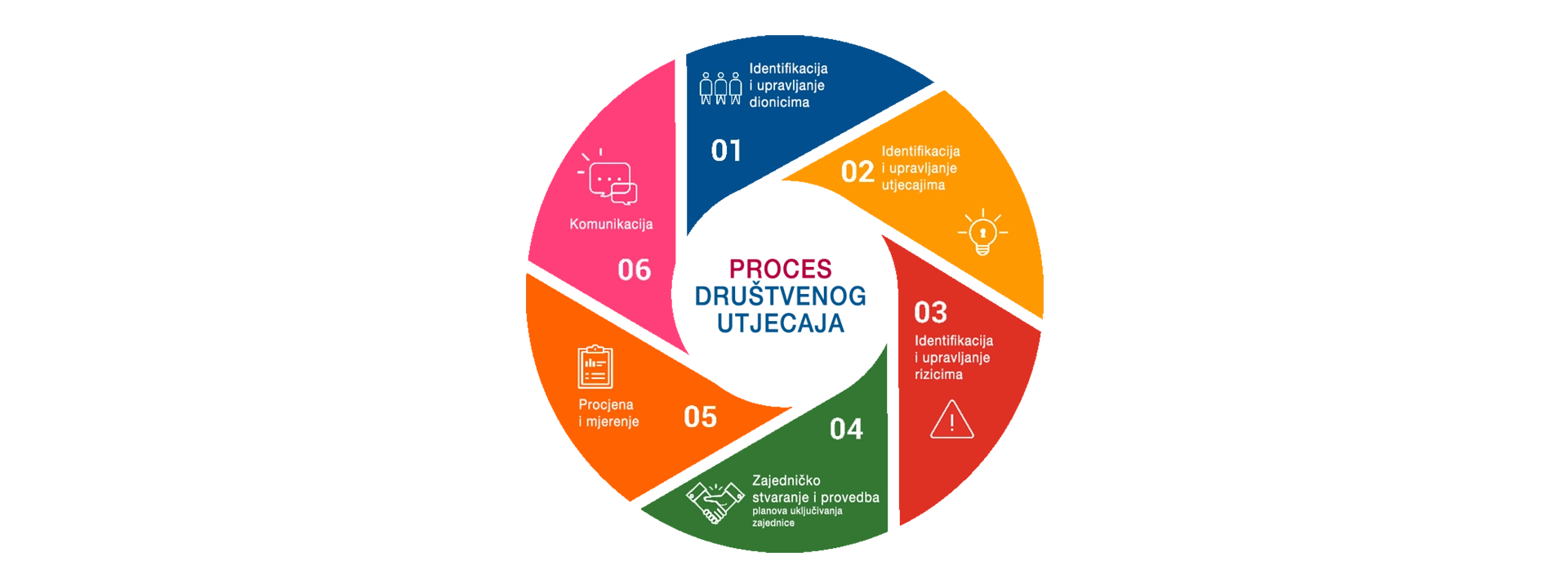 Kako bismo potakli redovni unutarnji i vanjski dijalog koji informira i vodi naše CEP-ove, organiziramo Odbore društvenog utjecaja, orjentirane interno i eksterno. Ti multidisciplinarni odbori doprinose upravljanju pitanjima zajednice, daju stručno mišljenje o pitanjima koja zanimaju dionike, preuzimaju obveze praćenja pitanja vezanih za njihova područja i doprinose kreiranju, izvršavanju i procjeni napora uključenja naših dionika.